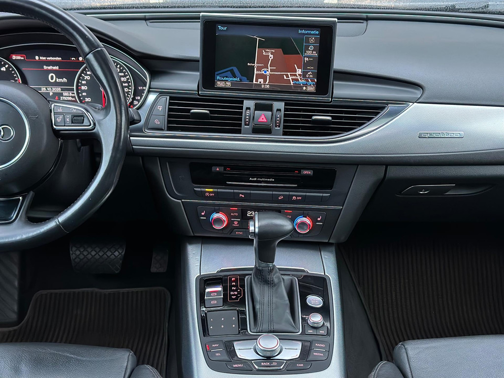 Een auto als de Audi A6 allroad quattro biedt een dynamiek en comfort die typerend zijn voor de producten van de Duitse autofabrikanten. Een zescilinder motor en een automatische transmissie zorgen samen voor een snelle en comfortabele rijervaring. Ribbels en hobbels in de weg worden royaal gladgestreken door de aanwezige luchtvering. De leren bekleding maakt het interieur helemaal af! De verwarmbare voorstoelen zijn een weldaad voor rug en schouders. Een handige voorziening op deze auto is de elektrische achterklep die u op afstand kunt openen. Geniet van de lichtinval en het uitzicht van het grote glazen panoramadak. Als u de stuurverwarming inschakelt, geniet u van weldadige warmte voor uw handen en vingers. U wordt in deze auto ook getrakteerd op 18 inch lichtmetalen velgen, bi-xenon koplampen, warmtewerend glas, in delen neerklapbare achterbank, verstelbare lendensteunen en snelheidsafhankelijke stuurbekrachtiging.