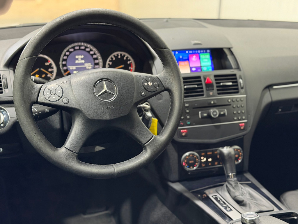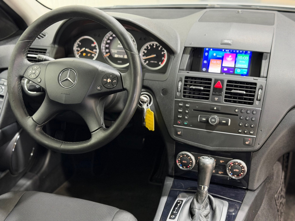 Een optie die de veiligheid verhoogt, is de bediening vanaf het stuur van het audiosysteem. Natuurlijk is er ook automatische airconditioning aanwezig. Boem is ho? Niet bij deze Mercedes-Benz C-klasse. De piepjes van de parkeersensoren waarschuwen u op tijd voor obstakels. De automatische ruitenwissers schakelen zichzelf automatisch in en uit en houden de voorruit schoon. Stel de cruise control in op de gewenste snelheid en u rijdt comfortabel en zuinig. Met lederen stuur, centrale deurvergrendeling met afstandsbediening en boordcomputer is deze Mercedes-Benz helemaal compleet.